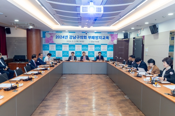 [아유경제=조현우 기자] 강남구의회(의장 김형대)는 이달 2일 오후 구의회 6층 열린회의실에서 전체 의원 및 구의회사무국 직원들을 대상으로 부패방지 교육을 실시했다.