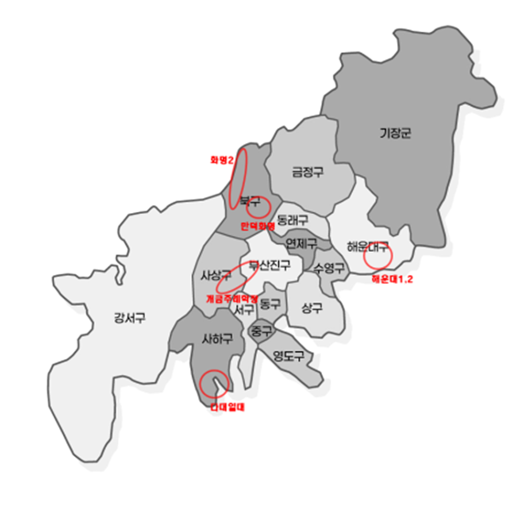 시 대상 지역은 ▲해운대1ㆍ2(300만 ㎡) ▲화명2(145만 ㎡) ▲만덕ㆍ화명ㆍ금곡 일대(240만 ㎡) ▲다대 일대(130만 ㎡) ▲개금ㆍ학장ㆍ주례 일대(120만 ㎡) 등이다.