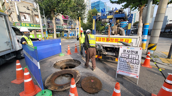 불량 맨홀 정비공사는 맨홀 상단과 도로 포장면의 높이가 일치하지 않거나 주변부가 파손돼 사고 위험이 있는 맨홀을 사전에 정비하는 사업이다.