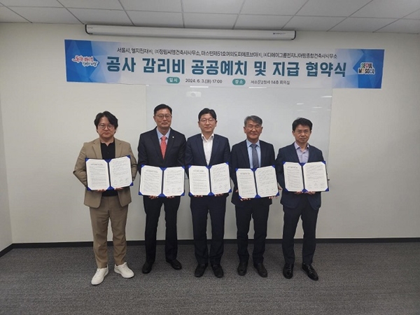 서울시는 `감리비 공공예치ㆍ지급 제도` 추진을 위해 지난 3일 시 허가 공사장 2개소와 서울시-건축주-감리자 3자 업무협약을 체결했다고 밝혔다. 협약을 맺은 2개 공사장을 시작으로 내달부터는 시내 25개 전 자치구로 제도가 확대된다.