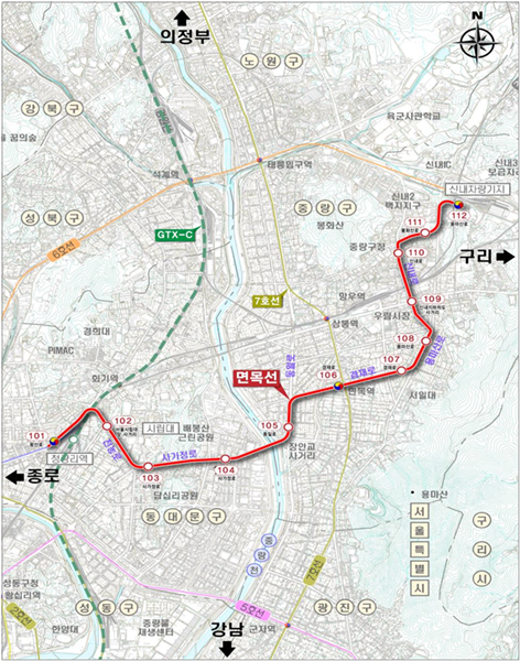 `면목선 경전철`은 동대문구 청량리역(1호선)에서 중랑구 신내역(6호선)을 연결하는 총연장 9.147km에 이르는 노선으로 12개 역사로 구성된다. 총 사업비는 1조814억 원이다.