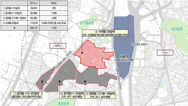 이 밖에도 청파로 변에 공원과 도서관을 복합 계획하고 청년 등 계층을 위한 공공기숙사 부지도 구상에 포함시켰고, 용도지역을 상행해 지상 최고 39층까지 지을 수 있도록 했다.