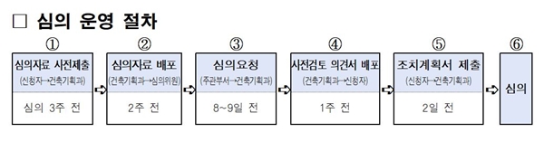 설계하중 및 중요도 등급의 적정성, 재료의 기준 강도 준수 여부 등 심의를 위한 필수 검토사항을 제공해 심의 도서의 적정성을 검토하는 데 활용하도록 한다. 또 심의 시기, 심의 진행을 위한 소요 기간 등을 안내해 건축주가 사업 일정을 계획하는 데 참고하도록 할 예정이다.