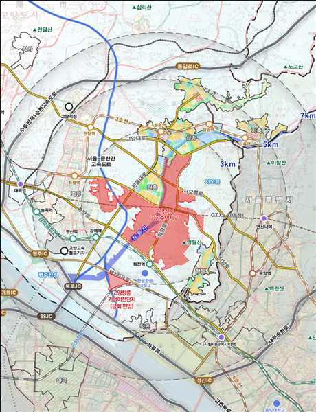 고양창릉 신도시는 고양 덕양구 원흥동, 성사동, 현천동 등 일원에 약 812만 ㎡ 규모로 추진되며, 2029년까지 3만6000가구의 주택을 공급하는 사업이다.