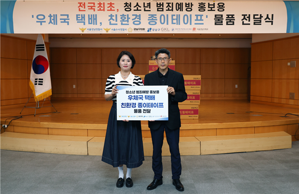 전달식에는 강남구의회 김진경 의원을 비롯해 강남구청, 강남우체국, 강남ㆍ수서경찰서, GKL 등의 관계자가 함께 참석해 포장용 친환경 테이프를 전달하며, 청소년 대상 범죄예방을 위한 협력체계를 강화하기로 하고, 관련 대책을 함께 논의했다.