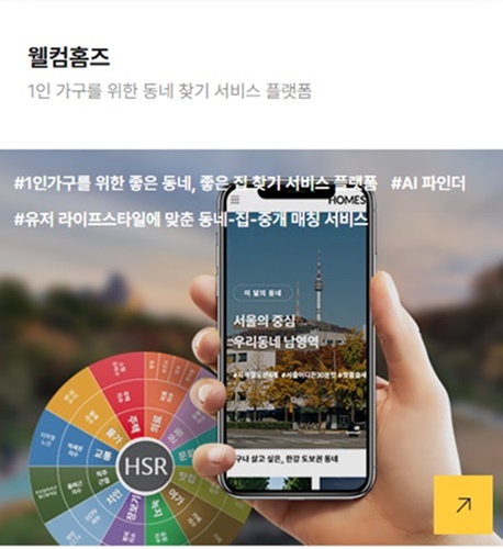 이달 8일 홈즈는 1인 가구를 위한 서울 동네별 정보를 담은 `웰컴홈즈` 플랫폼을 런칭했다고 밝혔다.