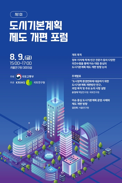 [아유경제=조명의 기자] 국토교통부(장관 박상우ㆍ이하 국토부)는 이달 9일 서울연구원에서 `제1회 도시기본계획 제도 개편 포럼`을 개최한다고 밝혔다. 인구감소, 지방소멸 등 당면한 도시문제 해결뿐만 아니라 기후변화, 4차 산업혁명 등 급변하는 환경변화에 대응하기 위한 도시기본계획의 역할을 모색하기 위해 마련됐다.
