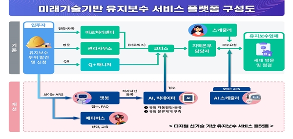 이달 13일 LH에 따르면 임대주택 입주민에게 신속하고 접근성 좋은 유지보수 서비스 제공을 위해 올해부터 2026년까지 2단계에 걸쳐 `유지보수 서비스 플랫폼`을 구축한다.