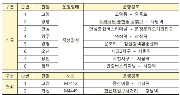 선정된 운수사업자는 차량ㆍ차고지ㆍ운전자 확보 등 운행을 준비하고, 대광위는 내년 상반기 중 준비된 노선부터 면허를 발급할 예정이다.