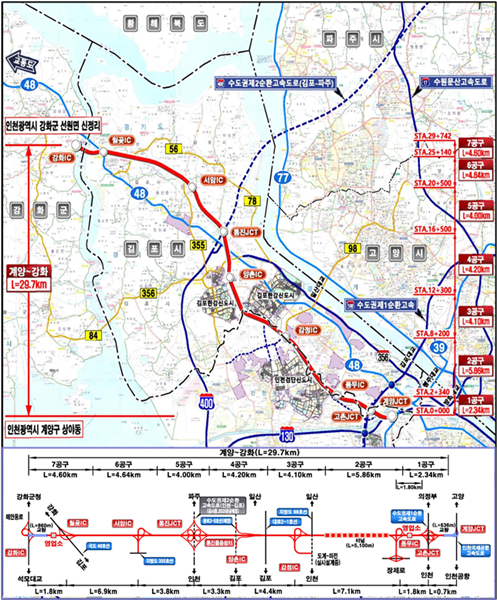 인천시 관계자는 "7공구 강화-김포 구간은 강화대교(국도 48호선)와 초지대교(국지도 84호선)의 상습 정체를 해소하기 위해 우선 착공이 반드시 필요하다"며 "한국도로공사와 긴밀히 협력해 최대한 착공 시점을 앞당길 수 있도록 노력하겠다"라고 밝혔다.
