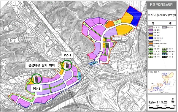 이번에 공급하는 토지는 올해 6월에 공급(P1)하고 남은 판교 제2테크노밸리 내 잔여 주차장 용지 2필지다. 공급면적은 각각 P2 1725㎡, P3 1764.4㎡다.