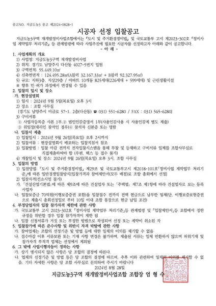 최근 유관 업계에 따르면 남양주 지금ㆍ도농3구역 재개발 정비사업조합(조합장 임형수ㆍ이하 조합)은 지난 5일 오후 3시 조합 사무실에서 시공자 선정을 위한 현장설명회를 개최했다.
