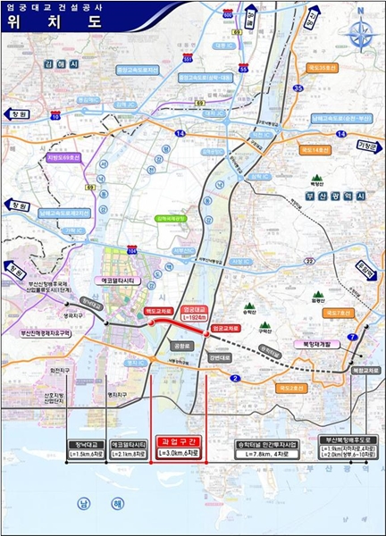 엄궁대교 건설사업은 강서구 대저동 부산에코델타시티에서 사상구 엄궁동을 연결하는 1.924㎞의 낙동강 횡단교량을 포함한 3㎞ 길이의 간선도로 건설사업이다. 부산의 지속적인 발전과 동ㆍ서부산권의 균형발전을 도모하기 위해 추진 중이며, 사업비 총 3455억 원(국비 1555억 원, 시비 1900억 원)이 투입될 예정이다.
