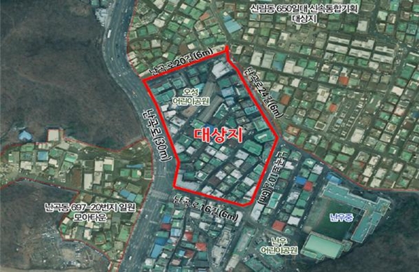 이곳은 저층 노후주택이 밀집돼 있고, 주차난이 심각하고 녹지도 부족하다. 특히 반지하주택이 50% 이상으로 주거환경이 열악한 지역이다.
