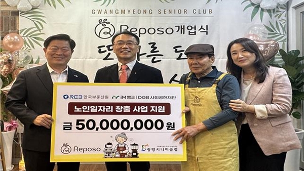[아유경제=조명의 기자] 한국부동산원은 이달 10일 경기 광명시 평생학습원 도란도란쉼터에 한국노인인력개발원이 주관하고 한국부동산원과 DGB사회공헌재단이 공동후원한 광명시니어클럽 `레뽀소(Reposo) 카페` 개소식을 개최했다.