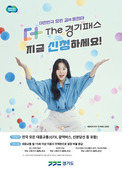 The 경기패스는 국토교통부 K-패스사업을 기반으로 경기도민에게 추가 혜택을 제공하는 도민 맞춤형 교통비 지원사업이다. K-패스의 월 60회 한도를 무제한으로, 청년의 연령기준을 19~34세에서 19~39세까지 확대해 매달 대중교통 비용의 20~53%(20ㆍ30대 청년 30%, 40대 이상 일반 20%, 저소득층 53%)를 환급해 준다. 전국 어디서나 버스ㆍ지하철ㆍ광역버스ㆍGTXㆍ신분당선 등 대중교통 이용 시 환급받을 수 있다.