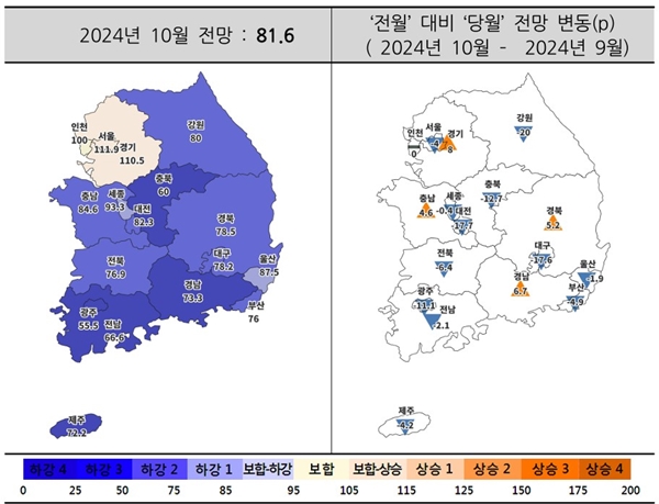 [아유경제=조명의 기자] 10월 전국 주택사업경기전망지수가 5개월 만에 하락했다. 수도권 주택사업경기전망지수는 소폭 오르고 비수도권 주택사업경기전망지수가 크게 떨어지며 수도권과 비수도권간 격차는 더 커진 것으로 나타났다.