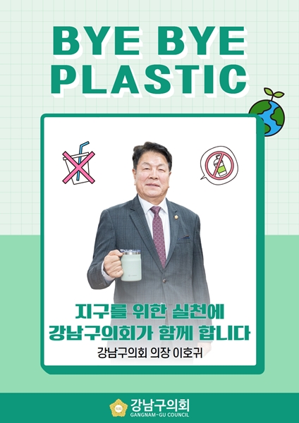 [아유경제=조현우 기자] 강남구의회 이호귀 의장은 이달 24일 플라스틱 사용을 줄이기 위한 범국민 캠페인 `바이바이 플라스틱 챌린지(Bye Bye Plastic)`에 동참했다.