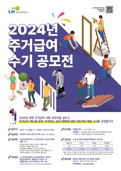 공모 결과는 오는 12월 18일 LH 누리집과 LH 주거복지 블로그를 통해 발표되며, 수상 작품은 추후 사례집으로 발간될 예정이다.