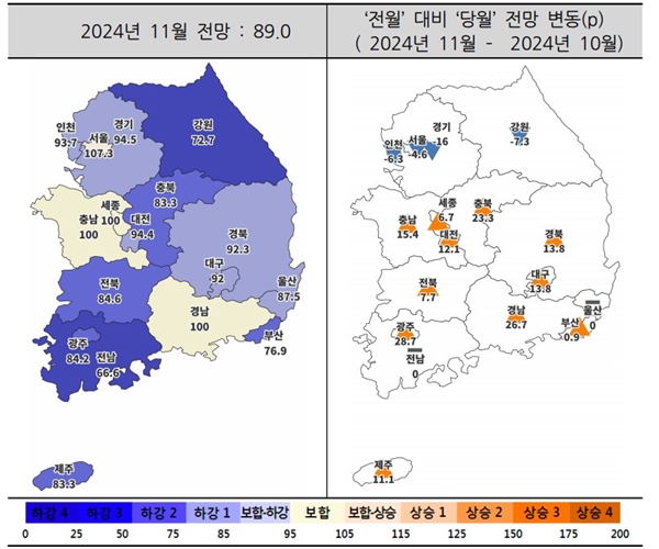 [아유경제=조명의 기자] 11월 전국 주택사업경기전만지수가 다시 상승세로 전환됐다. 수도권 주택사업경기전망지수가 전체적으로 하락했으나 비수도권 주택사업경기전망지수가 큰 폭 상승했기 때문으로 풀이된다.