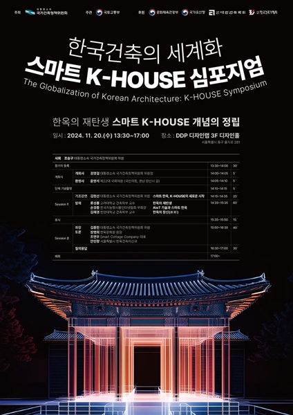 [아유경제=조명의 기자] 국가건축정책위원회는 국토교통부(장관 박상우)와 이달 20일 동대문디자인플라자 디자인홀에서 `K-건축의 세계화: 스마트 K-하우스 심포지엄`을 개최했다.