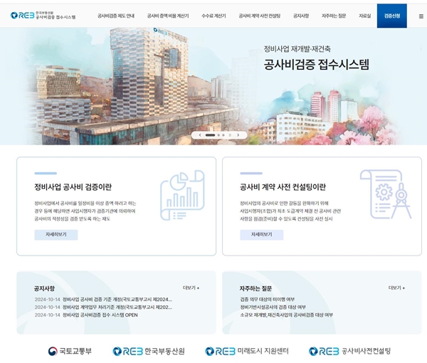 한국부동산원 관계자는 "공사비 검증 전자접수시스템 구축으로 사업시행자의 만족도가 높아지고, 검증의 투명성ㆍ신뢰성 또한 향상될 것으로 기대된다"라고 말했다.