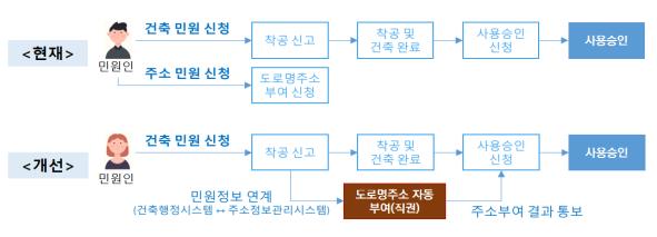 국토교통부(장관 박상우ㆍ이하 국토부)는 건축물 신축 시 착공 신고가 완료되면 건축주가 신청하지 않아도 지자체가 알아서 도로명주소를 부여하도록 업무절차와 시스템 개선을 완료했다.