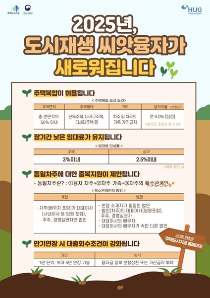 [아유경제=조명의 기자] 2025년부터 연면적의 50%까지 주택을 짓는 복합사업에도 도시재생씨앗융자가 허용된다.