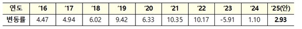 2025년 전국 표준주택 공시가격은 올해 대비 1.96% 오른다. 올해 0.57%보다 상승 폭이 커졌으나 표준지와 같이 최근 10년 사이 2번째로 낮은 상승 폭을 보였다.