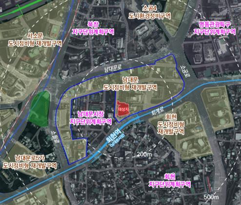 남대문로, 퇴계로 등으로 에워싸인 남대문구역 재개발은 1977년 최초 결정된 이후 총 15개 지구 중 8개소가 도시정비사업을 완료했다.