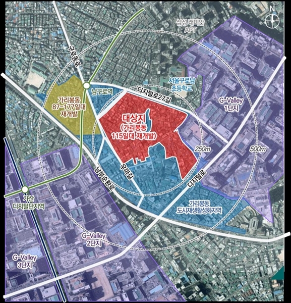 시는 가리봉동 일대가 가산ㆍ대림 광역 중심으로 G밸리 배후주거 기능을 하는 지역임을 고려해 주거ㆍ상업ㆍ여가 복합주거단지를 조성하고 보행 연결성 강화를 위한 공공보행통로(지역권 설정)를 만들도록 계획했다. 이를 위해 용도지역을 제3종일반주거지역ㆍ준주거지역까지 종상향하고 직장인과 인근 거주민의 편의를 위해 체육공간을 조성할 계획이다.