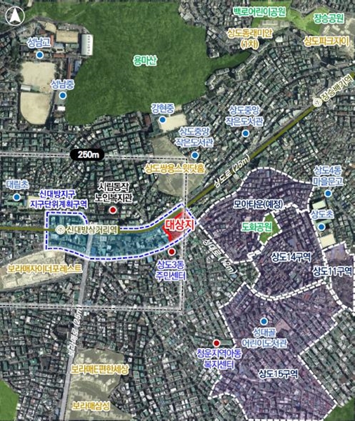 이번 계획에 따라 신대방지구 지구단위계획구역 내 위치한 대상지는 상도로 102(상도동) 일원 6186.9㎡를 대상으로 이곳에 지하 7층~지상 39층 규모의 공동주택 159가구 및 근린상가, 지역필요시설로 복합 개발된다.