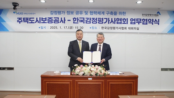 [아유경제=조명의 기자] 주택도시보증공사(HUG)는 한국감정평가사협회(이하 협회)와 이달 17일 감정평가 정보교류를 위한 업무협약을 체결했다고 밝혔다.