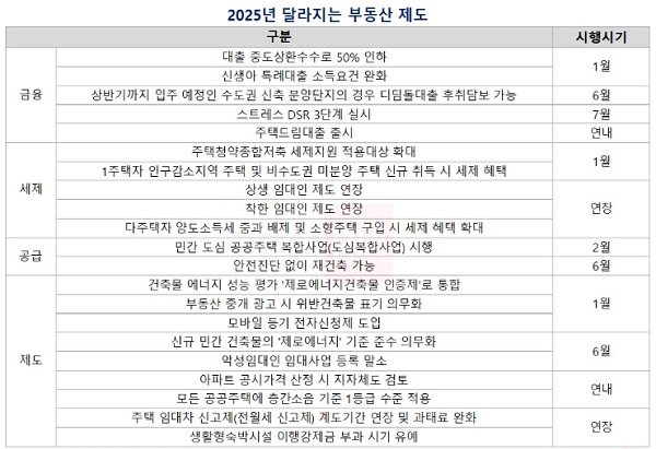 이에 본보는 2025년 새해를 맞아 올해부터 새롭게 달라지는 부동산 관련 제도가 무엇인지 시간 순서대로 자세히 짚어봤다.