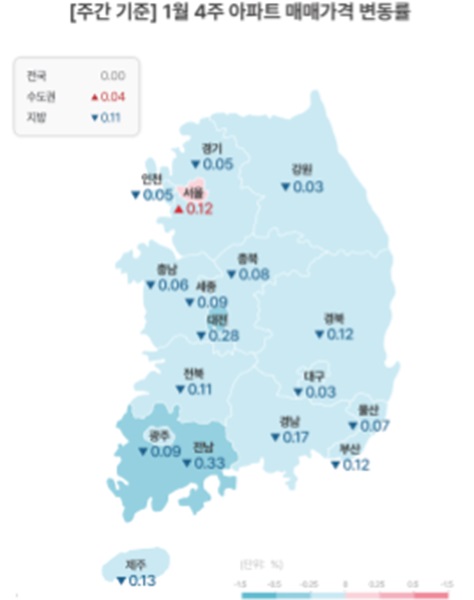 [아유경제_부동산] 2025년 1월 4주 전국 아파트 매매가격ㆍ전세가격… 전주 대비 모두 0% 보합