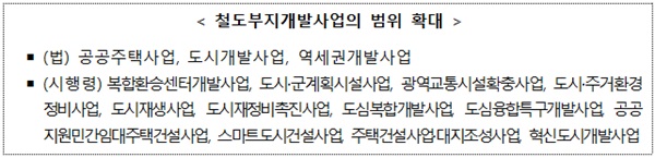 이번 시행령은 ▲확대된 철도부지 개발사업 범위 ▲시ㆍ도지사의 철도지하화 통합 개발 기본계획 수립 시 반드시 포함해야 하는 사항(사업의 추진 체계ㆍ재무적 타당성ㆍ지자체의 지원 방안 등) ▲기본계획 수립 또는 변경 시 지역주민과 이해관계자의 의견을 듣기 위한 공청회 개최 의무 등을 규정했다.
