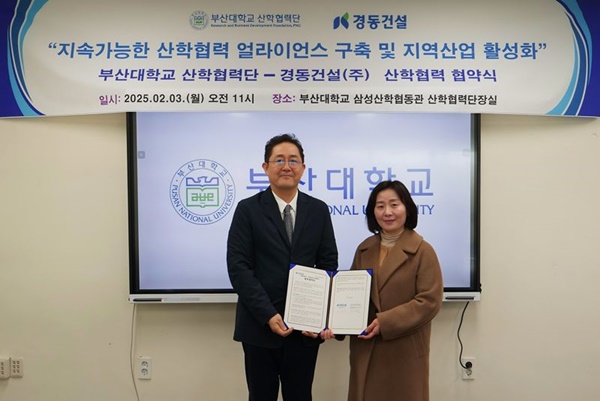 [아유경제=박창욱 기자] 부산대학교 산학협력단(단장 강정은)과 경동건설(사장 김정기)이 지역 산업 발전과 미래 인재 양성 협력 강화를 위해 손을 잡았다.