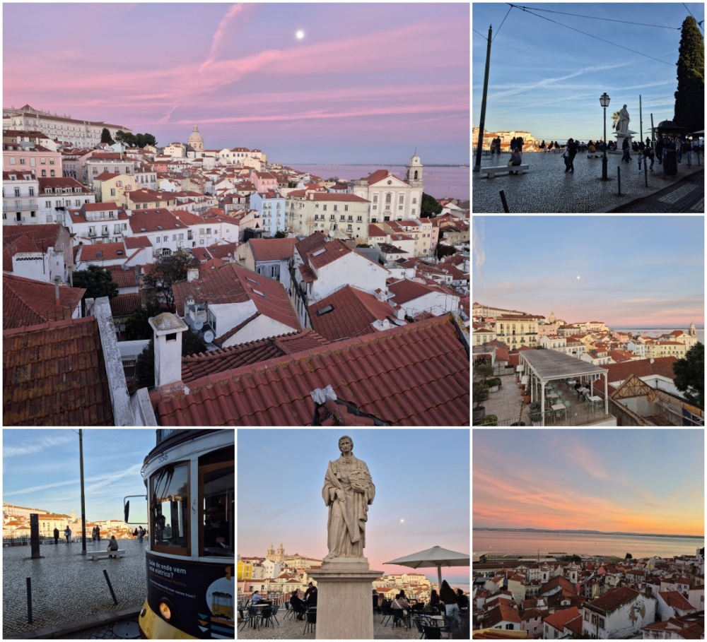 전망대에서 보면 멀리 리스본 구시가지의 주황색 기와지붕들 사이로 산티아고 교회와 아주라라 궁전도 볼 수 있다. 일몰과 일출을 보려고 관광객들이 많이 몰리는 곳이다.