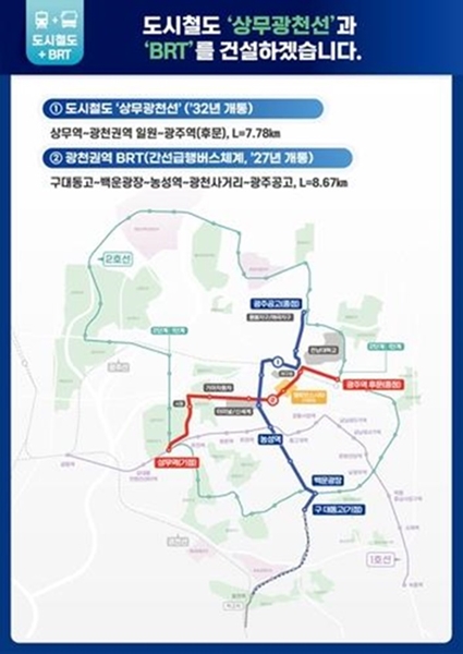 광주시 관계자는 "시의회에 제출된 광천상무선 도시철도망 구축계획 의견청취 제안서가 통과돼 사업을 본격 추진 할 수 있게됐다"며 "국토부와 지난해부터 사전협의를 진행하고 있었고 긍정적으로 검토하고 있는 만큼 2032년 완공될 수 있도록 하겠다"고 밝혔다.