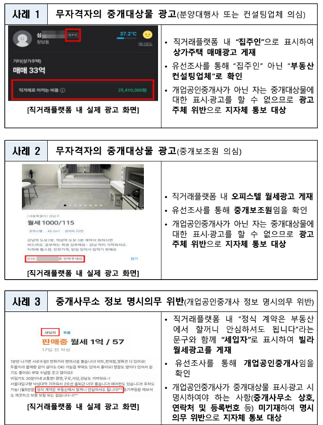 이에 국토부는 당근마켓과 한국부동산원, 한국인터넷광고재단 등과의 간담회를 통해 운영 가이드를 마련했다. 운영 가이드에는 부당한 부동산 표시ㆍ광고와 거래 행위에 따른 소비자 피해 예방을 위해 플랫폼 운영사업자, 광고게시자, 소비자가 준수해야 할 사항과 플랫폼 운영사업자ㆍ모니터링 기관이 소비자 보호와 투명한 거래질서 확립을 위해 상호 협력할 사항 등이 담겼다.
