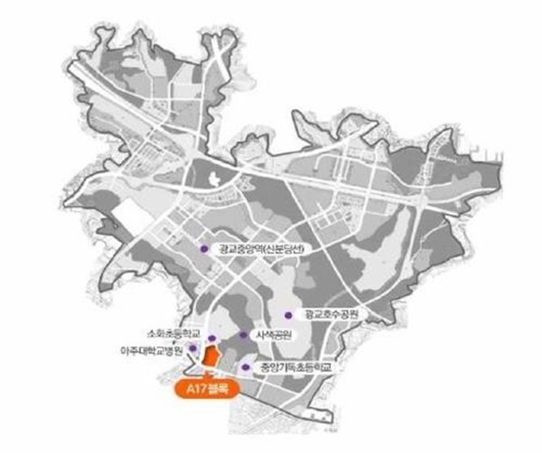 광교 A17 블록 공공주택사업은 경기주택도시공사(GH)가 광교신도시 내 옛 수원법조 부지인 A17 블록에 지분적립형 분양주택 240가구(전용면적 60㎡ 이하)와 일반 분양주택 360가구(전용면적 60~85㎡)를 짓는 사업이다.