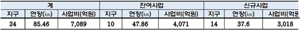 앞서 도는 2020년 `제3차 도로건설ㆍ관리계획(2021~2025년)`을 수립하고 24개 지구(총 85.46km)를 단기사업으로 확정한 뒤, 연차별 투자계획에 따라 현재까지 2826억 원을 투입해 사업 추진 중이었다.