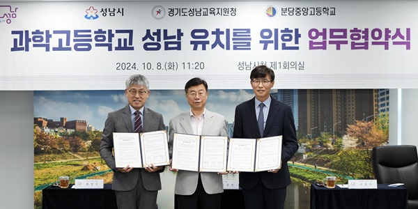 신상진 시장은 "과학고 유치를 통해 과학 교육의 중심지로 자리 잡을 것"이라며 "미래 인재 양성을 위한 차별화된 교육 프로그램과 성남지역 인적 인프라를 통해 대한민국 과학기술 발전에 기여하겠다"고 말했다.