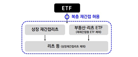현행 자본시장법은 과도한 보수 수취와 복잡한 상품 개발 등을 방지하기 위해 펀드가 재간접펀드에 투자하는 것(소위 재재간접 또는 복층 재간접 투자)을 금지한다. 이로 인해 국내 부동산 등에 투자하는 실물투자 상품의 다양성이 부족해 투자자 선택권이 제한된다는 지적이 잇따랐다. 지난해 말을 기준으로 한 국내 ETF 935개 가운데 부동산ㆍ리츠 ETF는 13개(국내투자 5개ㆍ해외투자 8개)로 1.4% 수준이다.