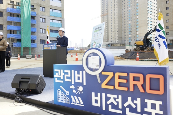 김동연 도지사는 이달 11일 제로에너지건축물 5등급 예비인증을 획득한 화성 동탄2 A93블록 장기전세주택 현장에서 이 같은 내용의 `관리비 제로 아파트 비전`을 발표했다.