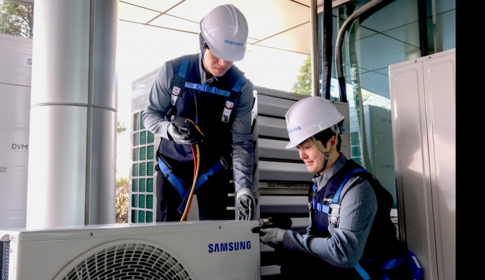 삼성전자서비스 엔지니어가 에어컨 사전점검 서비스를 제공하는 모습