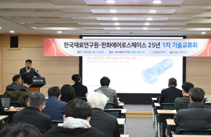 한화에어로스페이스는 24일 경남 창원 한국재료연구원에서 ‘한국재료연구원-한화에어로스페이스 2025년 1차 기술교류회’를 진행했다고 25일 밝혔다. 이날 행사는 첨단항공엔진 개발에 필요한 소재 원천기술를 확보하기 위해 기획된 행사로 최주태 한화에어로스페이스 임원, 유봉선 한국재료연구원 부원장 등 약 20 명 이상의 관계자들이 참석했다.