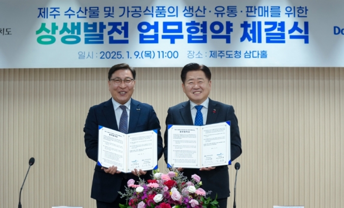 제주도는 9일 오전 11시 도청 삼다홀에서 ㈜동원F&B와 ‘제주 수산물 및 가공식품의 생산·유통·판매를 위한 상생발전 업무협약’을 체결했다.