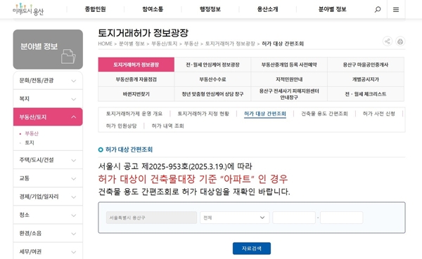 [아유경제=조명의 기자] 서울 용산구는 전국 최초로 `토지거래허가 정보광장` 시스템을 구축하고 이달 31일 오픈했다고 밝혔다.