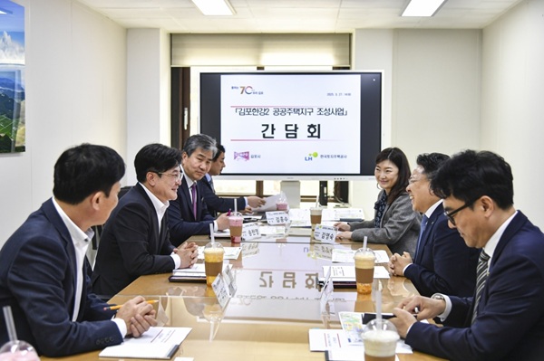 김포시는 지난달(3월) 27일 김포한강2콤팩트시티 조성사업의 성공적 추진을 위한 간담회를 개최, 한국토지주택공사(LH) 국토도시본부 및 관계자 등과 사업의 주요 현안을 공유하고 구체적 상호 협력 방안 등에 대해 논의했다고 밝혔다.